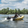 В базовой комплектации идут стеклопластиковые законцовки-ступеньки, заметно облегчающие выход из воды и встроенные спиннингодержатели в кницах, около транца. Орлан 370 рассчитан на максимальную мощность в 30 л.с. (двухтактные моторы) или максимальный вес мотора в 55 кг.